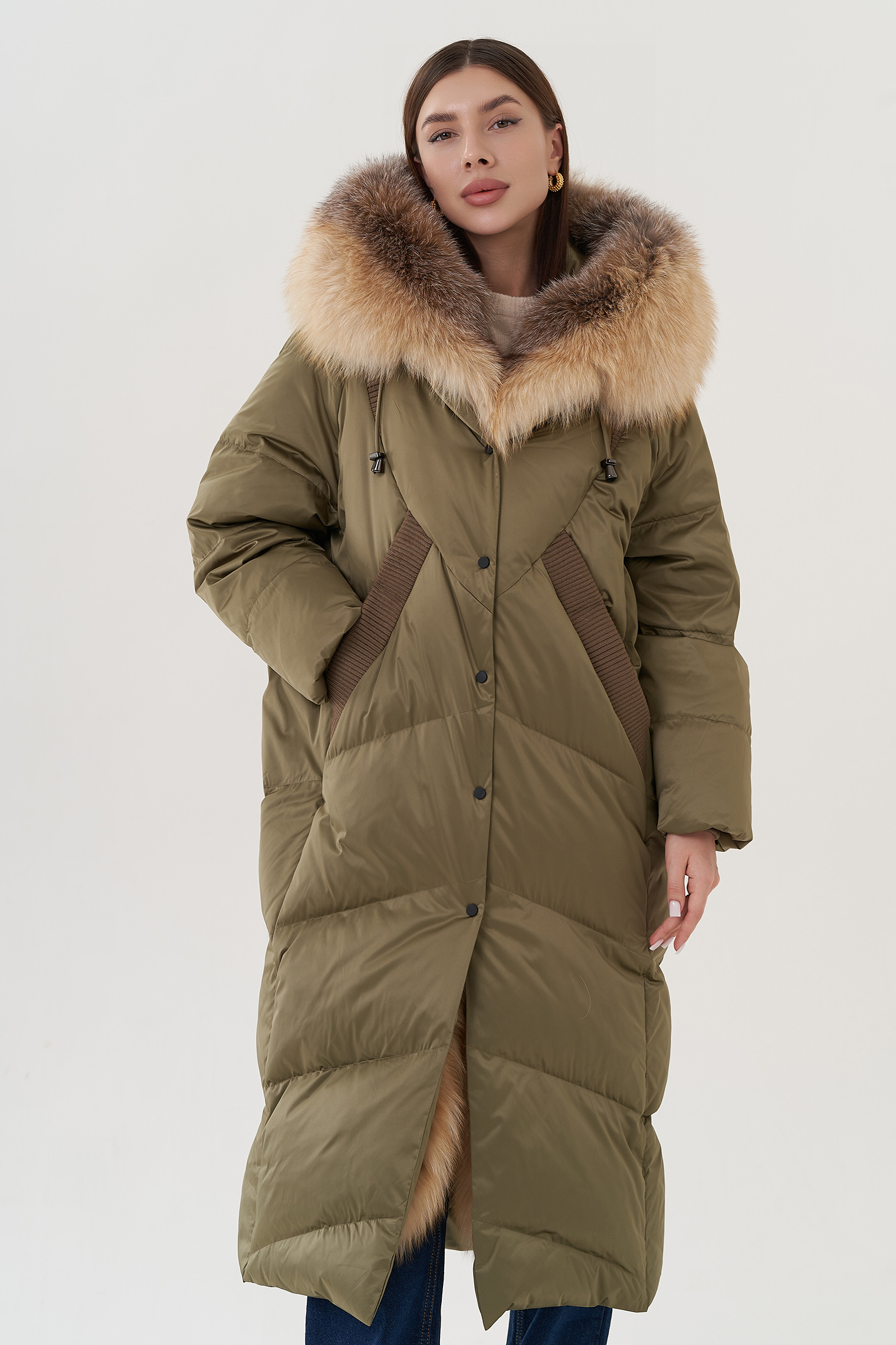 Крой воротника - капюшон, отделка лиса